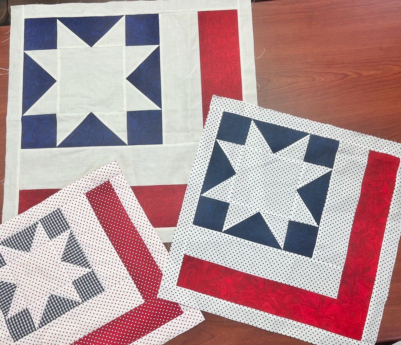 This “Patriotic Mini Quilt” is a perfect summer project class. It can be used as a table topper, wall hanging or adapted for a pillow. It is simple enough for a someone just starting or enjoyable for a more seasoned quilter. When I say quick - I made three different sizes in an afternoon after calculating each set dimensions from the original design.